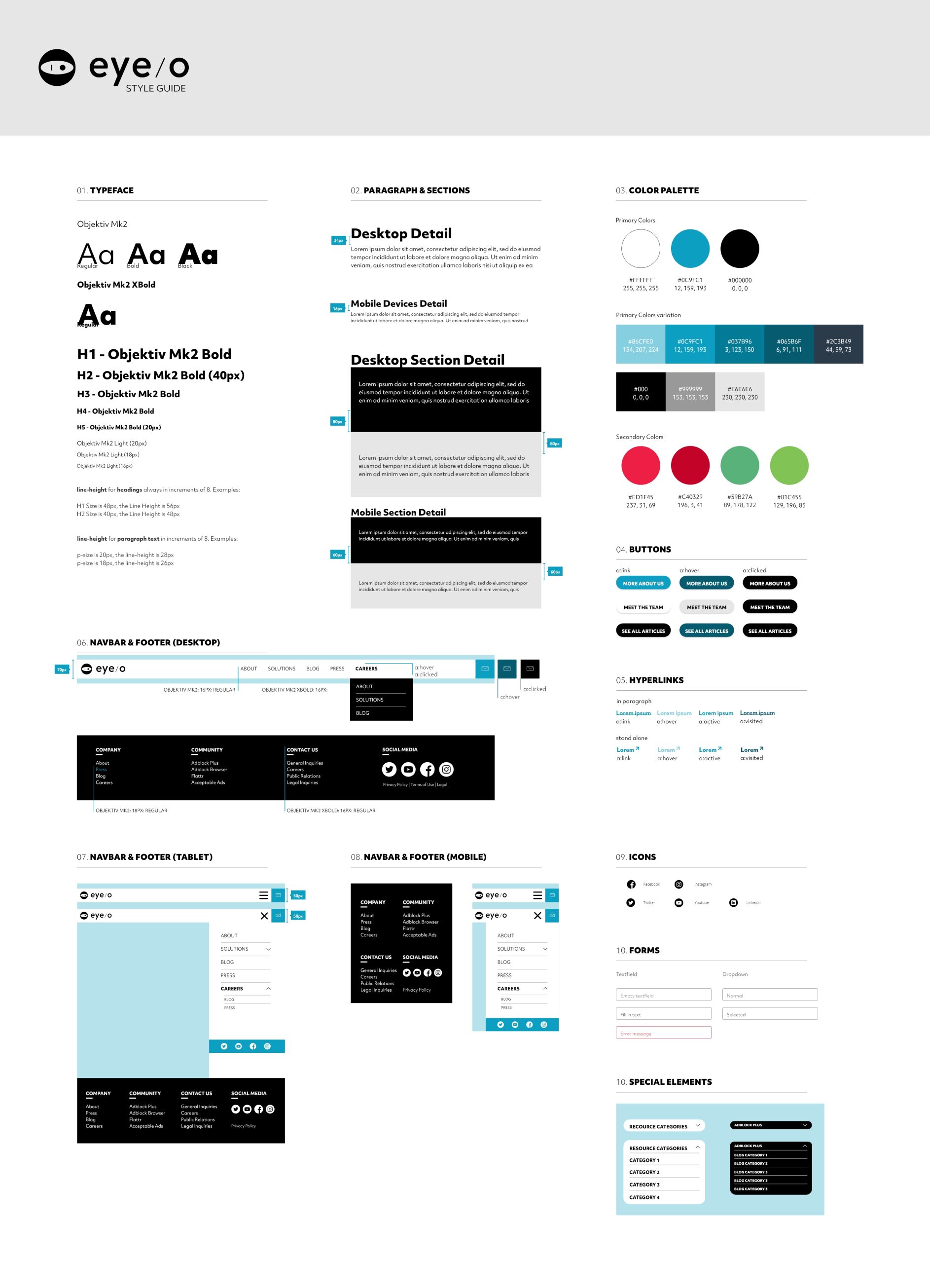 We translated the entire visual system into illustrations—scrapping almost every previously-used photo or “real world” motif. From sitemap wireframes to content modules and buttons, everything was built within a consistent grid and type scale, unified through eyeo’s new iconography and color choices.