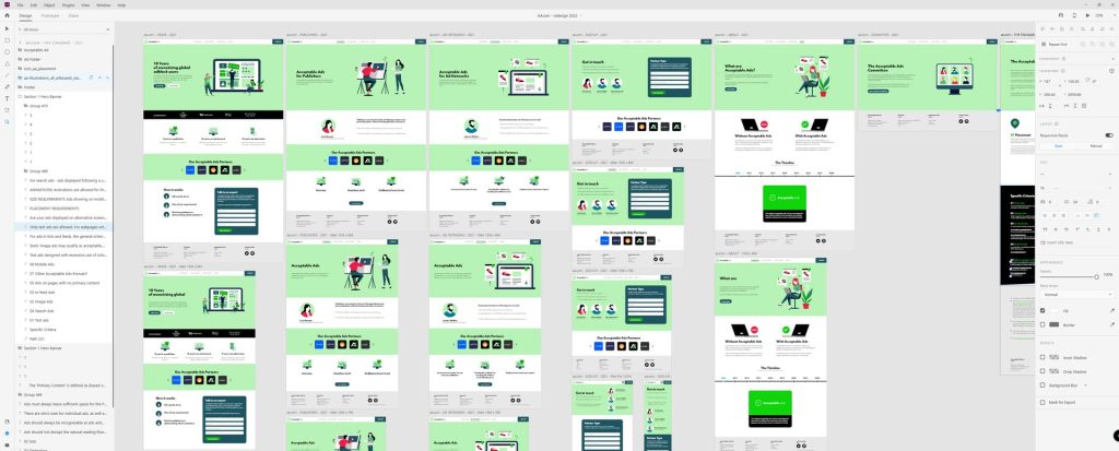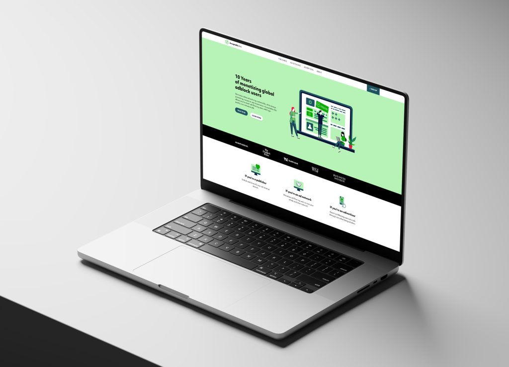 At the beginning of 2022, we were tasked with reimagining the digital presence of Acceptable Ads, a cross-industry initiative focused on better ad standards. The existing site leaned on imagery and photorealistic elements, but no longer reflected the evolving goals and tone of the initiative. The challenge was to make the platform more engaging, accessible, and forward-facing, especially to appeal to both users and stakeholders across different organizations. The direction was clear: shift toward a unified, illustration-based identity, with stricter color limitations and a modular, UX-friendly design language. Same with the overall rebranding of the company.